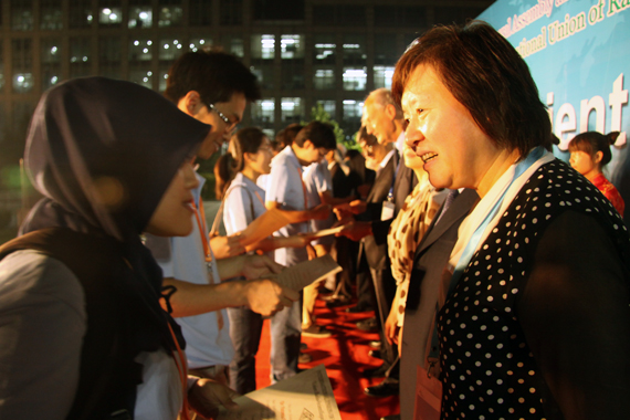 北航新闻网8月19日电(通讯员 阎照文) 8月18日晚,第三十一届国际无线电科学联盟大会青年科学家证书颁发典礼在我校新主楼二层广场举行,来自国际无线电科学联盟(URSI)、中国电子科技集团公司(CETC)、中国电子学会(CIE)、北京伊人99、北京大学、复旦大学、北京理工大学、北京交通大学、北京邮电大学等高校的嘉宾和世界各地的本届URSI大会青年科学家共240余人出席了典礼大会。