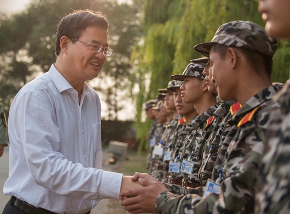 张军副校长首先来到训练场,与正在训练的教官和同学一一握手并亲切交谈。他详细了解了军训工作情况和同学们的感受,叮嘱同学们在完成训练任务的同时,更要注意身体健康。在观看了飞行学院2014级新生军体拳表演后,张军副校代表学校领导对参加军训的同学们表示亲切的慰问,对承训部队的教官表示衷心的感谢,对军训前期取得的成果给予充分的肯定。他说,同学们昂扬的斗志、整齐的军容、嘹亮的口号充分展示出北航飞行学员一流的精神面貌和纪律作风。张军副校长对同学们提出了五点希望。他希望飞行学院的同学们培养“爱祖国、爱航空、爱航天、爱北航、爱民航”的大爱精神;树立崇尚荣誉、享受竞争的英雄主义;增强服从命令、听从指挥的纪律作风;发扬团结协作、奋发有为的团队精神;练就攻坚克难、能打胜仗的过硬本领。
