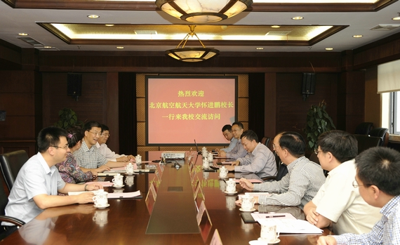 交流中,怀校长回顾了北航与川大的历史渊源及近年来的友好合作,并对四川大学近年在教育改革中取得的优异成绩表示祝贺,怀校长围绕学校办学目标与定位、教育教学改革举措、人事制度改革等同与会人员进行了深入探讨,并希望能够进一步深化北航同川大之间的合作,发挥各自学科优势,共同推进人才培养和教育教学改革,实现两校的合作共赢。