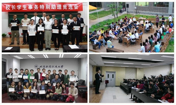 北航新闻网10月10日电(通讯员 马野) 实施校长学生事务特别助理(以下简称“学生助理”)制度是学生发挥主人翁作用、参与学校管理的有效途径,是密切师生互动、促进和谐校园建设的有力举措,也是全员育人、提升学生组织管理能力的重要平台。2009年10月,徐鹏程、盛铭、孙芊蔚等5名同学开始担任首届学生助理。五年来,学校先后聘请80名同学(90人次)担任学生助理。校长怀进鹏院士对学生助理提出了“ABCD”四点希望,即要“积极主动、搭建桥梁、增进沟通、落实责任”(Active,Bridge,Communication,Duty:英文首字母为ABCD)。五年来,同学们积极开拓,大胆实践,在与校长面对面的沟通中思考,在与机关各部门老师们的互动中学习,在与全校同学的交流中成长,让学校领导和机关各部门老师们直接听到了同学们的声音,协助解决了一批学生关心的问题和诉求。同时,他们同所有北航学子一样与母校共同成长、共同发展。如今,他们之中,有的已走上工作岗位,成为中国空间技术研究院、保利集团等单位的业务骨干;有的奔赴新疆阿勒泰地区、宁夏泾源县支教,有的赴法国中央理工大学、香港科技大学等一流大学留学深造;有的已由当年的本科生变成了博士生,在学校科研攻关一线继续努力探索。