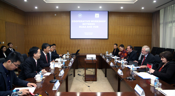 北航新闻网10月21日电(通讯员 童骏) 10月20日,布鲁塞尔自由大学(荷语)国际事务副校长阳·科诺理(Jan Cornelis)教授、国际关系及交流处处长杰奎琳·库德(Jacqueline Couder)博士、电子与信息系希彻姆·沙利(Hichem Sahli)教授、应用物理与光子学系海蒂·奥特维亚(Heidi Ottevaere)教授及中国合作部主任同晓红女士一行访问我校,与我校就技术转让、电子与光电子、信息与通信技术等领域举行了多场合作研讨。