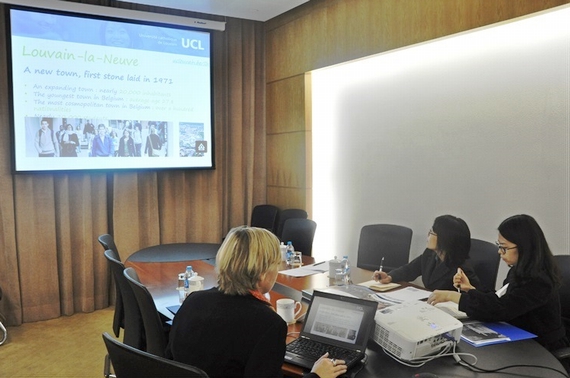 会谈中,国际学院副院长赵海云教授首先对到访来宾表示欢迎,并介绍了我校在国际合作和国际教育等方面的整体情况。布伦女士详尽介绍了鲁汶大学工学院的情况,并希望两校在学生交换上开展强有力的合作,充分拓展学生的国际经历。双方随后围绕学生交换项目、企业实习、暑期学校等议题深入交换意见,并达成多项合作共识。