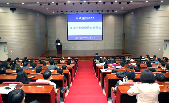 北航新闻网10月23日电(通讯员 贾明顺/文 记者 廖行/摄影)10月22日下午,我校在新主楼会议中心第一报告厅召开了“科研经费管理检查动员会”,党委书记胡凌云、校长怀进鹏、常务副书记张维维、纪委书记纪素菊、副校长张军等领导出席大会。会议由常务副书记张维维主持。