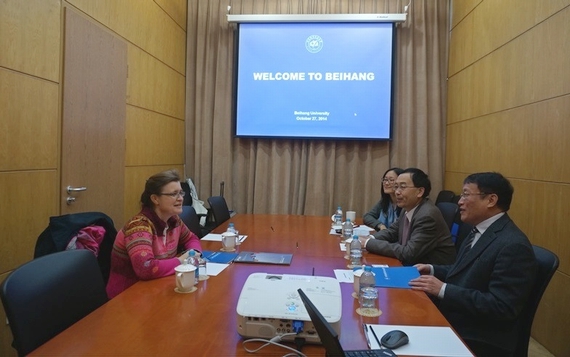 北航新闻网10月28日电(通讯员 童骏) 10月27日上午,法国约瑟夫·傅里叶大学外事副校长安妮·米列(Anne Milet)教授访问我校。陶智副校长在新主楼会议中心第六会议室亲切会见了来宾,国际交流合作处相关负责人参加会谈。