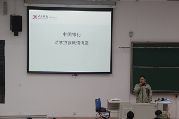 银行工作人员在沙河校区宣讲