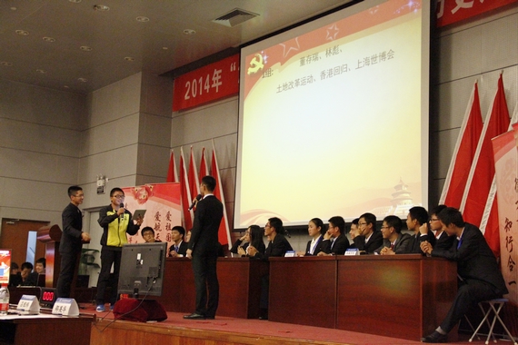 北航新闻网11月6日电(通讯员 吕经纬) 11月5日晚,以“学党史、忆党魂、立斗志、扬青春”为主题的2014 “沙航论剑”党的理论和历史知识竞赛决赛在4号实验楼205报告厅举行。沙河校区党委书记陈志英,校党委组织部特邀组织员曾妙南、刘存安,组织部、学生工作部、沙河校区管委会等部门老师,部分学院分党委副书记担任评委。来自各书院、学院的400余名同学观看了决赛。