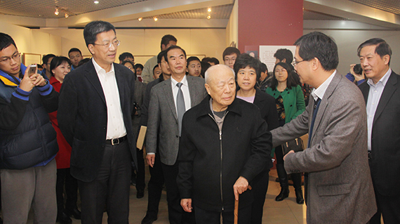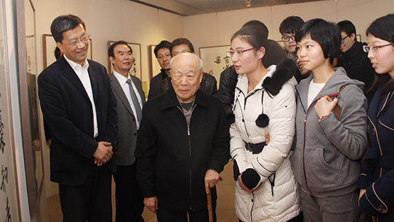 我校校长怀进鹏院士、北京市委教育工委副书记郑萼与欧阳中石先生亲切交流 余 敏/摄影