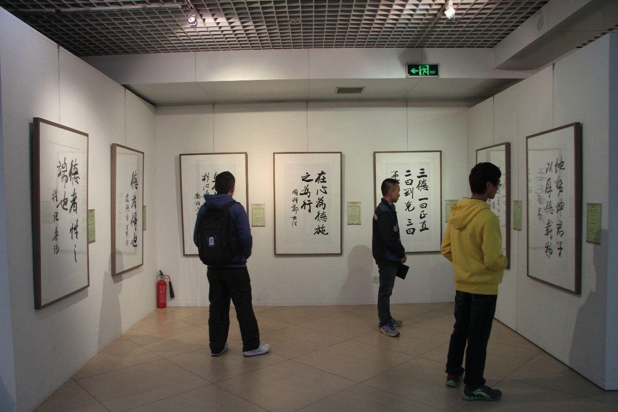 校学生党校、宇航学院等专门组织学生参观了本次展出,同学们一边认真欣赏着一幅幅端正朴茂的书法作品,一边认真学习一则则意蕴深厚的中华传统美德古训,大家纷纷表示活动很有意义,在领略欧阳中石先生精湛的书法艺术的同时,也受到了中华传统美德的熏陶和洗礼,是一次生动的社会主义核心价值观教育。
