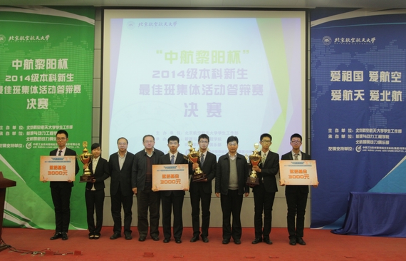 北航新闻网11月28日电(通讯员 桑济昌) 11月26日晚,由学生工作部主办,能源与动力工程学院、北航黎阳动力俱乐部共同承办的“中航黎阳杯”2014级本科新生最佳班集体活动答辩赛决赛在沙河校区实验四号楼205报告厅举行。中航工业集团中航工业贵州黎阳航空发动机(集团)有限公司宋红团副总经理、中航工业贵州黎阳航空发动机(集团)有限公司团委黄金书记,我校沙河校区管委会、学生工作部、能源与动力工程学院相关领导出席答辩赛。共有来自10个院系的14支队伍参加了本次答辩赛决赛。