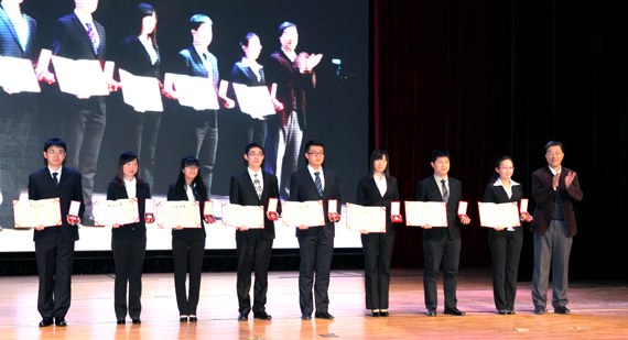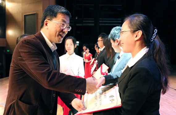 表彰会上,与会领导和嘉宾先后为五四奖章、金质奖章、大学生年度人物和优秀留学生奖学金获得者颁奖。阿卡贝拉清唱社的同学们表演了小合唱《say something》,从一个侧面展示了文化素质教育和学生社团发展的成果。