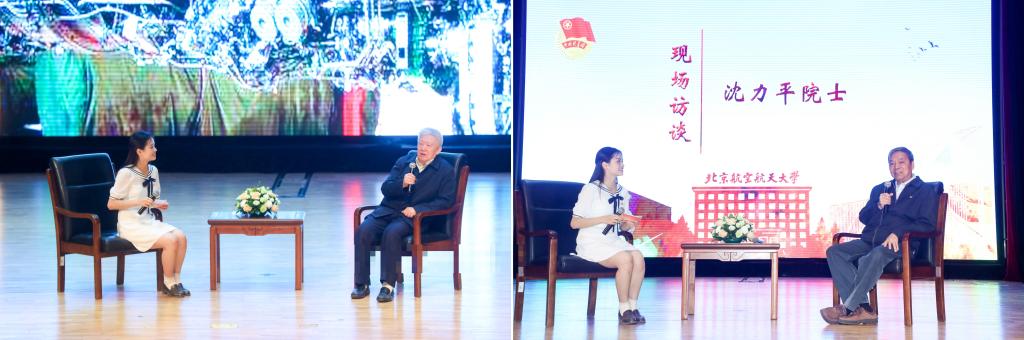 晚7时许,活动正式开始。第一篇章由歌曲《柏彦起航》开篇,表现了建校初期,北航人筚路蓝缕,立志为祖国的航空航天事业贡献力量的青春理想。主持人对陈懋章院士和沈力平老师进行访谈,严肃而不失活泼的问题让两位先生回忆自己年轻时怀揣着一腔热血,投身祖国航空航天事业的那段峥嵘岁月,同时也表达了对新一代北航青年的殷切希望。