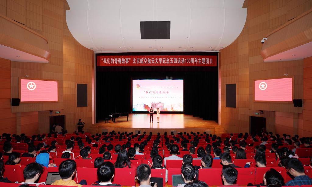 北航新闻网5月1日电(通讯员 南照博/文 邸白鹭/摄影)4月30日晚,“青春心向党·建功新时代”主题宣传教育实践活动《我们的青春故事》纪念五四运动100周年主题团日在晨兴音乐厅举行。共青团中央青年发展部部长杨松、校党委副书记赵罡以及相关部门老师出席本次活动。现场八百余名师生共同观看聆听,更提供校内直播的形式供全校学生实时收看学习。