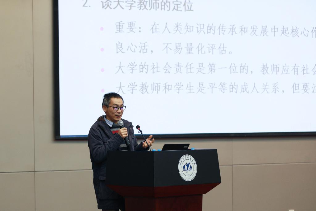 “大学教师是在人类知识的传承和发展中起核心作用的一个职业,这份职业是高尚的,是需要责任感的。作为大学教师必须热爱学习、热心科研、热爱教学。”这是王洪伟作为2018年“立德树人奖”获奖教师,在题为《为知识的传承与发展添砖加瓦》的宣讲报告中的一番话。他对教师的职业素养和价值追求有着很深的体会,一句“真正让学生获益的教学改革,更多的是教师本身的改进”,不禁令人拍手称快。作为一位致力于“为人类知识的传承做一些小事”的高校教师,勇气更是值得敬佩。