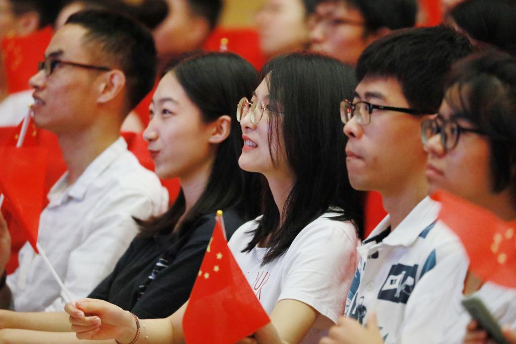 北航新闻网10月1日电(记者 王晴/文 邸白鹭 张展毓 田文浩 李淼/摄影)2019年10月1日,首都各界庆祝中华人民共和国成立70周年大会在北京天安门广场隆重举行,中共中央总书记、国家主席、中央军委主席习近平出席大会并发表重要讲话。在这举国同庆的日子里,北航广大在校师生自行通过电视、网络、广播、手机客户端等,积极收听收看大会直播,学校也在学院路校区晨兴音乐厅和沙河校区咏曼剧场同步设置了直播会场,观看庆祝中华人民共和国成立70周年大会、阅兵和群众游行的直播。