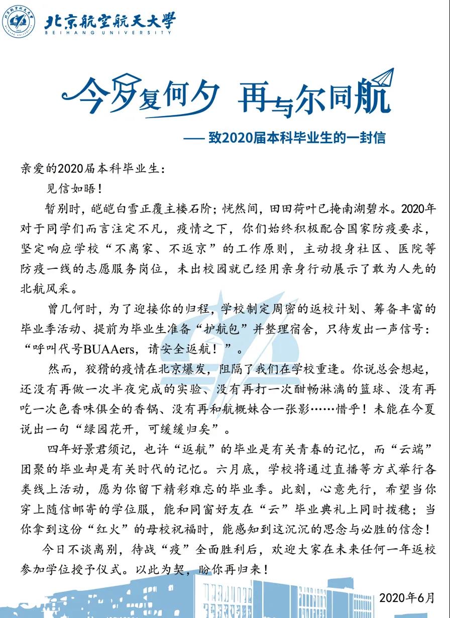 《今夕复何夕,再与你同航——致2020届本科毕业生的一封信》更是让毕业生们感动不已,“希望当你拿到这份‘红火’的母校祝福,能感知到这沉沉的思念”,信中还写道,“今日不谈离别,欢迎大家在未来任何一年返校,参加学位授予仪式。以此为契,盼你再归来!”