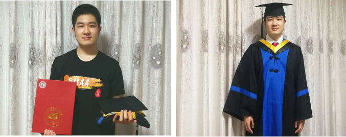仪器科学与光电工程学院2016级本科生王耀国(天津市):收到学位服和纪念品,我才发现,我们真的就要毕业了。心中充满不舍,北航承载了我太多记忆,见证了我太多成长。回顾四年,很幸运能来到北航,拥有各种各样的机会,遇见美好的大家。期待未来的我们能不忘初心,继续前行,做德才兼备、知行合一的北航人。