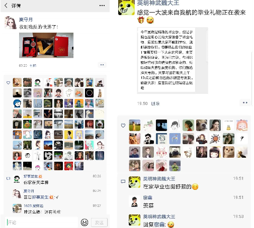 定制院徽马克杯、专属戒指、特色文创套装、毕业纪念册、贴心防护包……除了学校的毕业礼物,各学院也有丰富多彩的云毕业活动,努力为毕业生打造暖心毕业季。“最难忘”的一次班会、毕业记忆视频、线上毕业晚会、一封书信、“本科关键词”系列文章,还有班级通过采购助农的方式凝心聚力……种种丰富多彩的活动,为这个难忘的毕业季写下精彩的注脚。