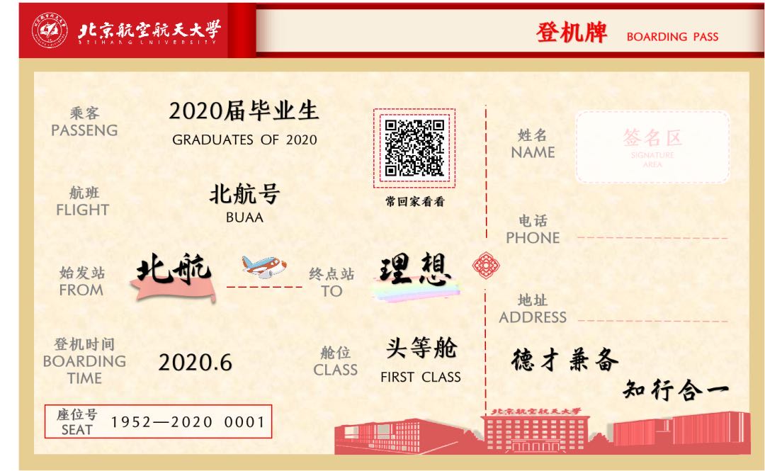 当晨读园的桃花飘进了主楼,窗外已是绿草如茵,南湖畔的芦苇在随风摇曳,一如初见时的招手欢迎。这一份份向天南海北的北航学子遥寄的礼物,承载了北航对学子的思念,镌刻了最美好的青春。2020,毕业快乐!