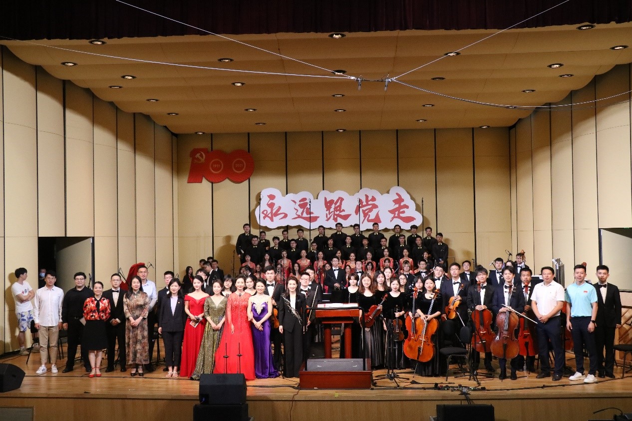本次音乐会是北航学生交响乐团、学生合唱团继2018年合作演出北航大型原创交响合唱《星空组歌》后的再度合作。在指挥金刚老师和杨乐乐老师的带领下,北航学生交响乐团与北航学生合唱团携手为观众带来了12首红色经典作品,通过作品演绎中国共产党党史的峥嵘岁月。