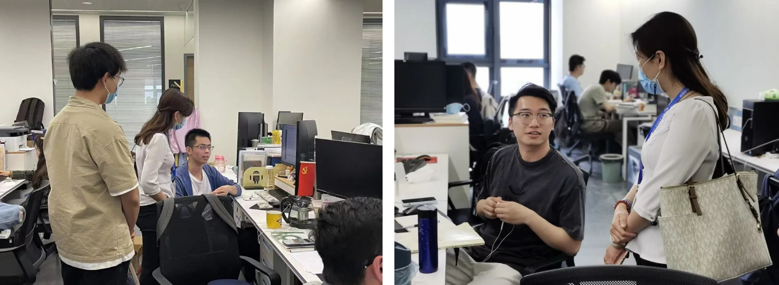 他们走近学生工位,探望大家科研学习进展,导师们也通过线上平台与研究生进行学业指导和交流沟通,全面了解学生的学习生活状态,收集学生的意见建议,全力解决同学们的实际困难。
