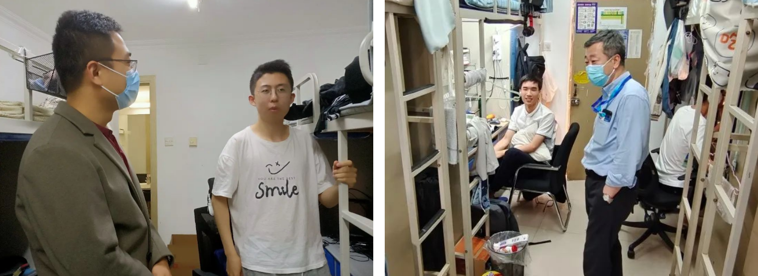 校园封闭以来,各学院书记、院长、专兼职辅导员全覆盖走访学生宿舍,询问大家上网课、科研、求职等现状,了解同学们的思想动态和生活需求,帮助大家解决实际困难。