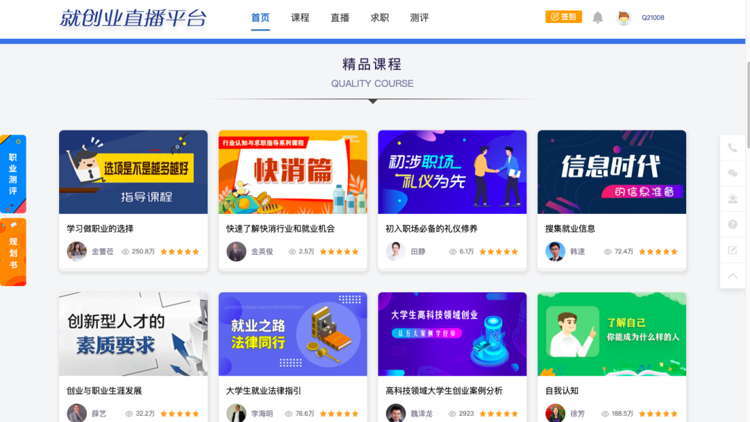 全周期线上课程,积极引入就创业直播平台,整合就业创业课程、职业测评等资源,通过系统、实用、趣味的教学内容,聚合相关高校、企业、校友等的优质资源,助力学生一站式提升就业创业能力。手机端与电脑端,校内校外都可轻松访问北航就业资讯网,点击首页轮播图即可。