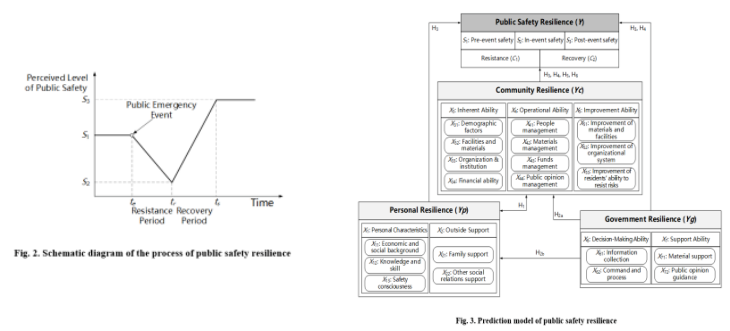 左:公共安全韧性模型及实证数据;右:以社区为中心的公共安全韧性实证模型