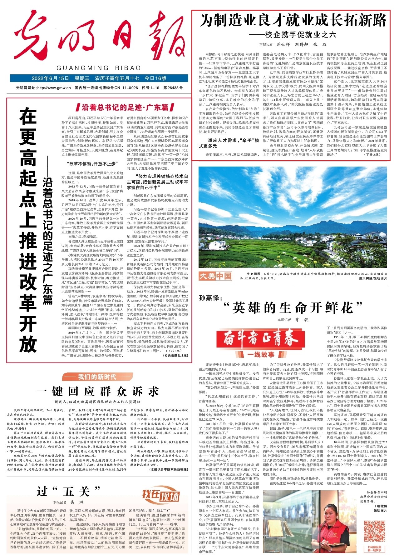 《光明日报》2022年6月15日头版(记者 周世祥 刘博超 张胜)报道: