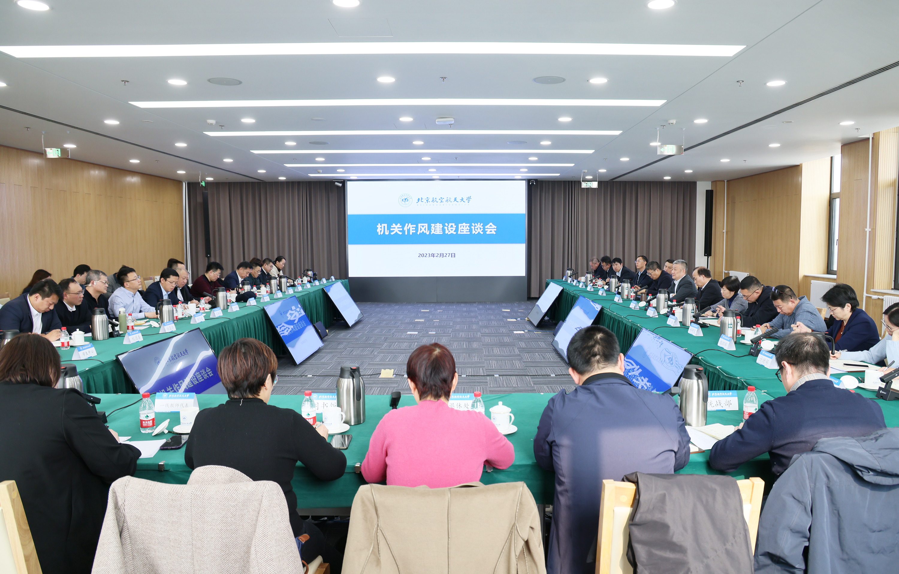 北航新闻网3月1日电(通讯员 李济辰/文 记者 邸白鹭/摄影)2月27日上午,学校召开机关作风建设座谈会。党委书记赵长禄,党委副书记、纪委书记何新洲,副校长刘树春、张海兰,党委副书记、机关党委书记程波,党政机关、服务支撑机构负责人参加会议。会议由程波主持。