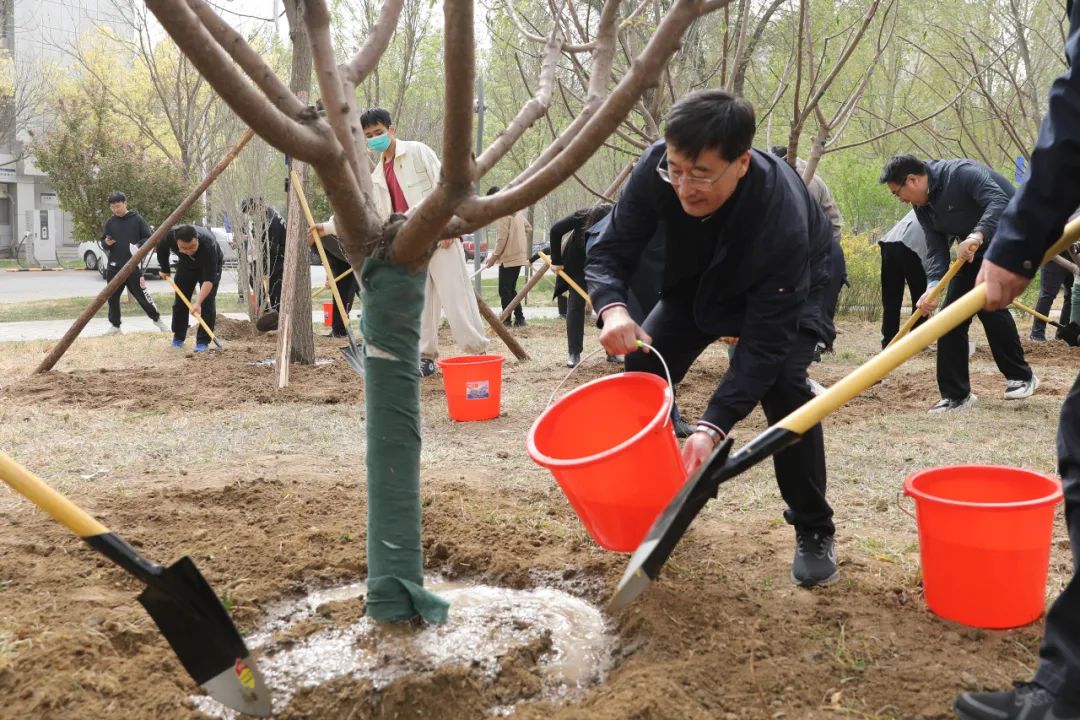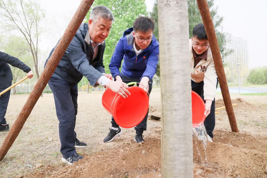 一锹土、一桶水,大家合力栽下30株优质树苗,包括银红槭、国槐、白皮松、绚丽海棠、山桃等树种,劳动场面繁忙有序。