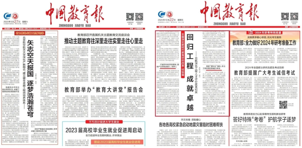 2023年,学校圆满完成本科教育教学审核评估。专家组一致认为,学校打造“强情怀、强基础、强实践、强融通”的人才培养“四强”模式,持续推动科研优势转化为人才培养优势,构建高质量人才培养体系,在本科教育教学改革方面取得了实际成效,形成了北航特色。