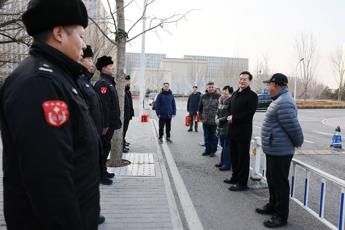 王云鹏一行前往保安门岗、安防中控大厅、锅炉房、学生宿舍、校医院等地看望慰问了坚守岗位的安保、后勤员工、楼管宿管、医护人员,王云鹏充分肯定了过去一年大家的工作成绩,向坚守岗位的工作人员致以崇高的敬意和亲切的慰问,祝大家龙年吉祥、工作顺利。他嘱咐大家要恪尽职守,继续保持高度警惕,牢筑安全防线,守住安全底线,确保各类设备正常运转,保障校园生产生活安全,为广大师生员工提供温暖的服务。他表示,一流的大学要有一流的服务,要深入推进服务和治理数字化,统筹用好大数据平台,做好联动,他鼓励大家在新的一年再接再厉,再创辉煌,为我校的“双一流”大学建设提供更加坚实的支撑。