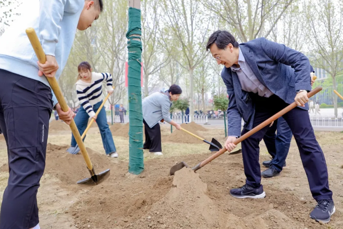 北航新闻网4月12日电(通讯员 董胜辉/文 记者 邸白鹭 通讯员 姜海洋 李淼 张智博/摄影)春回大地,草木逢春,植树播绿正当时。4月12日上午,党委书记赵长禄,校长王云鹏,党委副书记、纪委书记何新洲,副校长刘树春,党委副书记程波,副校长吕卫锋,党委副书记杨立军,副校长赵巍胜、吕金虎、邓怡等一行来到沙河校区八号楼东侧绿地,和师生一同开展义务植树活动,共同为沙河校区植树添绿。
