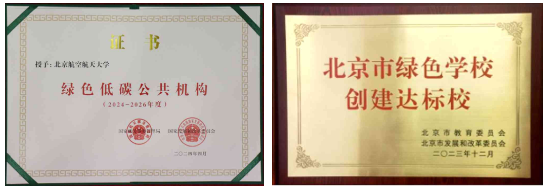 北航还曾获得过“节能减排教育示范基地”“节约型公共机构示范单位”“首都绿化美化先进单位”“北京高校十佳美丽校园”“节水型高校”等称号。