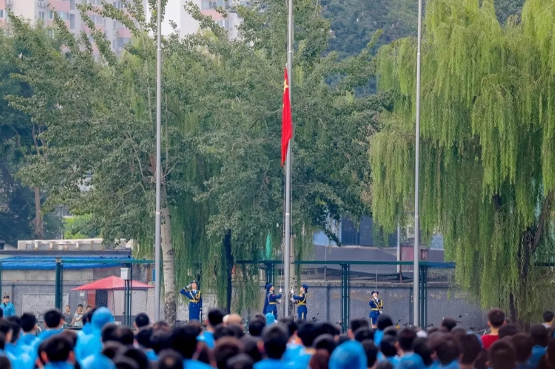 伴随着励志的视频短片《星辰》,典礼正式开始。庄严激昂的国歌声中,国旗冉冉升起。