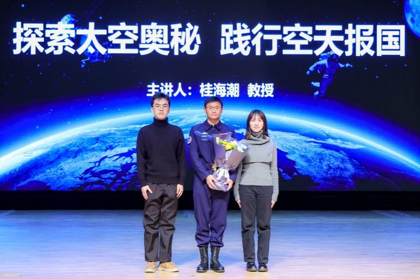 北航新闻网12月12日电(通讯员 岳佳暄 程昺宸)12月4日下午,中国航天员、载荷专家、北航宇航学院教授桂海潮来到北航晨兴音乐厅,为学生们带来题为《探索太空奥秘,践行空天报国》的专题报告。来自北京伊人99和3所优质生源基地校(亦庄建华实验中学、海淀人大附分校、西城北京四中)的大中小学生共850余人参加讲座。校学生工作部、沈元学院相关负责人出席了本次活动。