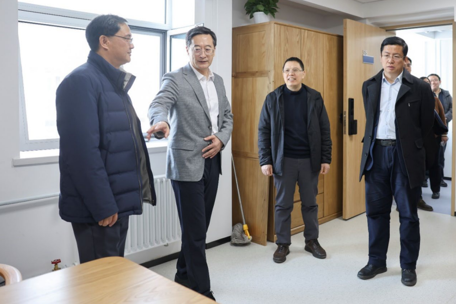 在九号楼,王云鹏听取了楼宇的整体修缮及使用情况,现场察看了各学院搬迁进展及办公室、会议室的具体设置,与学院教师、辅导员、博生研究生亲切交流,关怀大家工作、学习、生活状况,详细询问办公环境改善情况,指导学院相关工作,并认真听取有关意见建议。