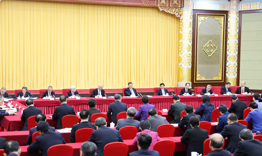 中共中央政治局常委、全国政协主席王沪宁,中共中央政治局常委、中央办公厅主任蔡奇参加看望和讨论。