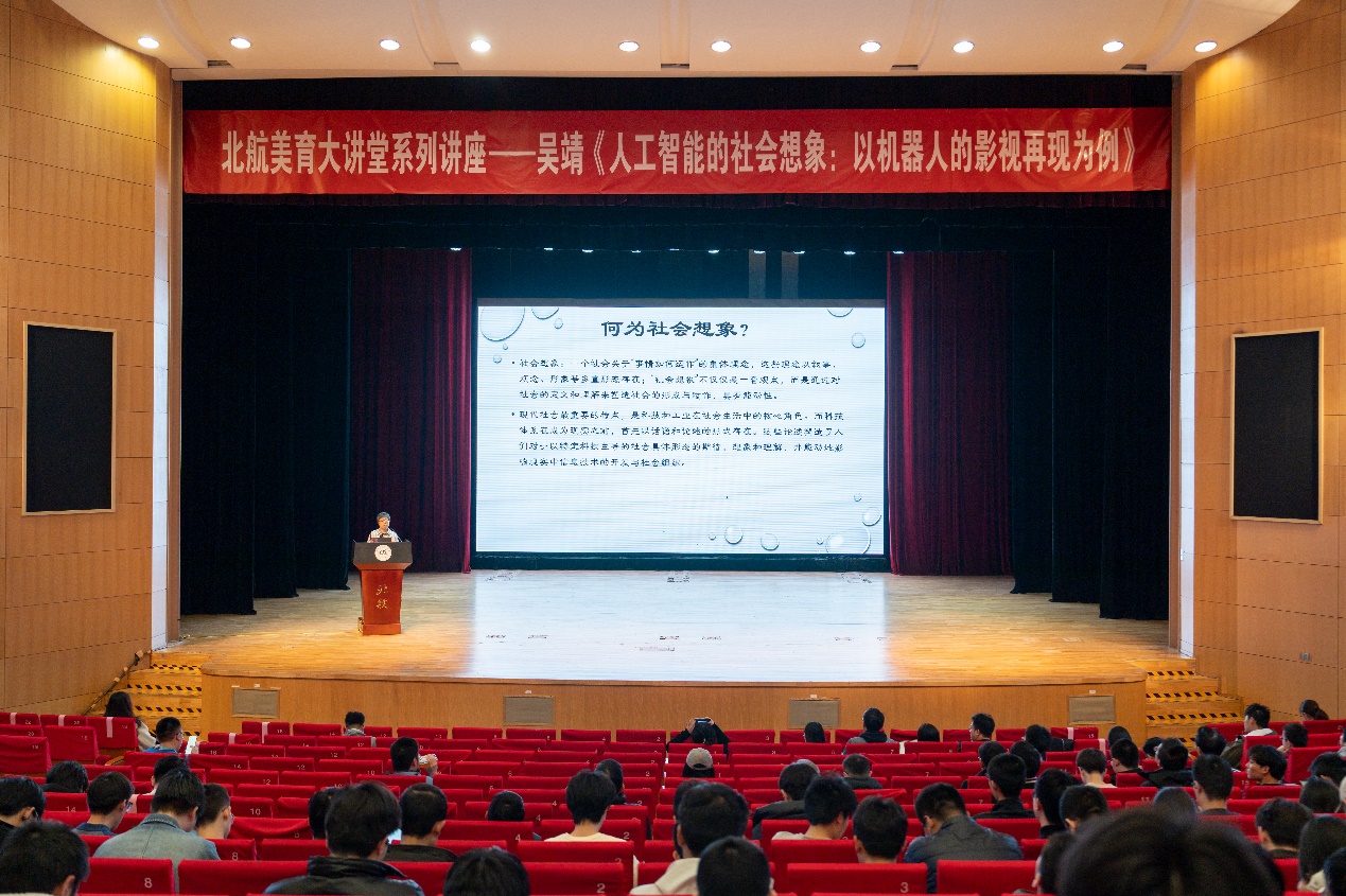 北航新闻网3月20日电(通讯员 高蕊 张宸瑶)3月19日下午,北航美育中心特邀北京大学新闻与传播学院教授、新媒体研究院博士生导师吴靖做客美育大讲堂,为师生带来“人工智能的社会想象:以机器人的影视再现为例”美育主题讲座。讲座由北航美育中心副主任宋泽惠主持。