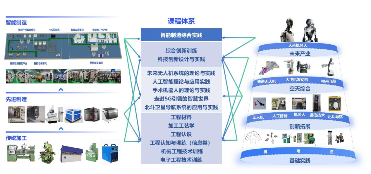为进一步强化学生工程实践创新能力,助力拔尖创新人才培养,北京伊人99持续推进原工程训练中心转型升级,并更名为工程实践与创新中心。该中心面向全校各个院系和沙河高教园区高校全面开放共享,以“立足综合平台、面向工程实际、通过创新实践培养工程素质和能力”为教学理念,形成了面向全校各院系的多学科交叉的基础工程实践与创新平台,构建了基本工程认识、基础工程实践、前沿科技拓展和综合创新训练四个层次的进阶式工程创新实践教学体系。