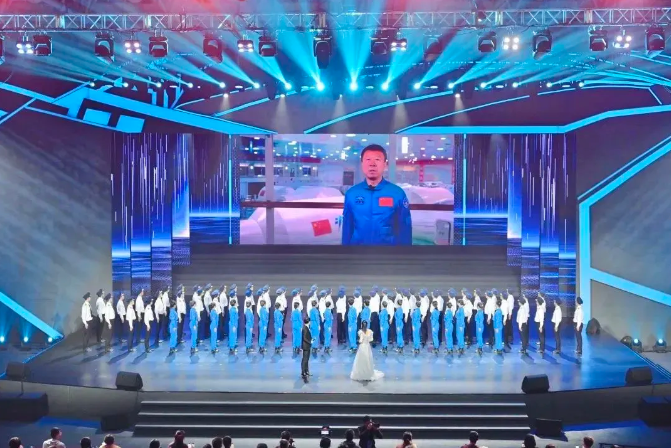 北航建校70周年庆祝晚会现场连线航天员刘旺,他祝福母校并寄语北航学子