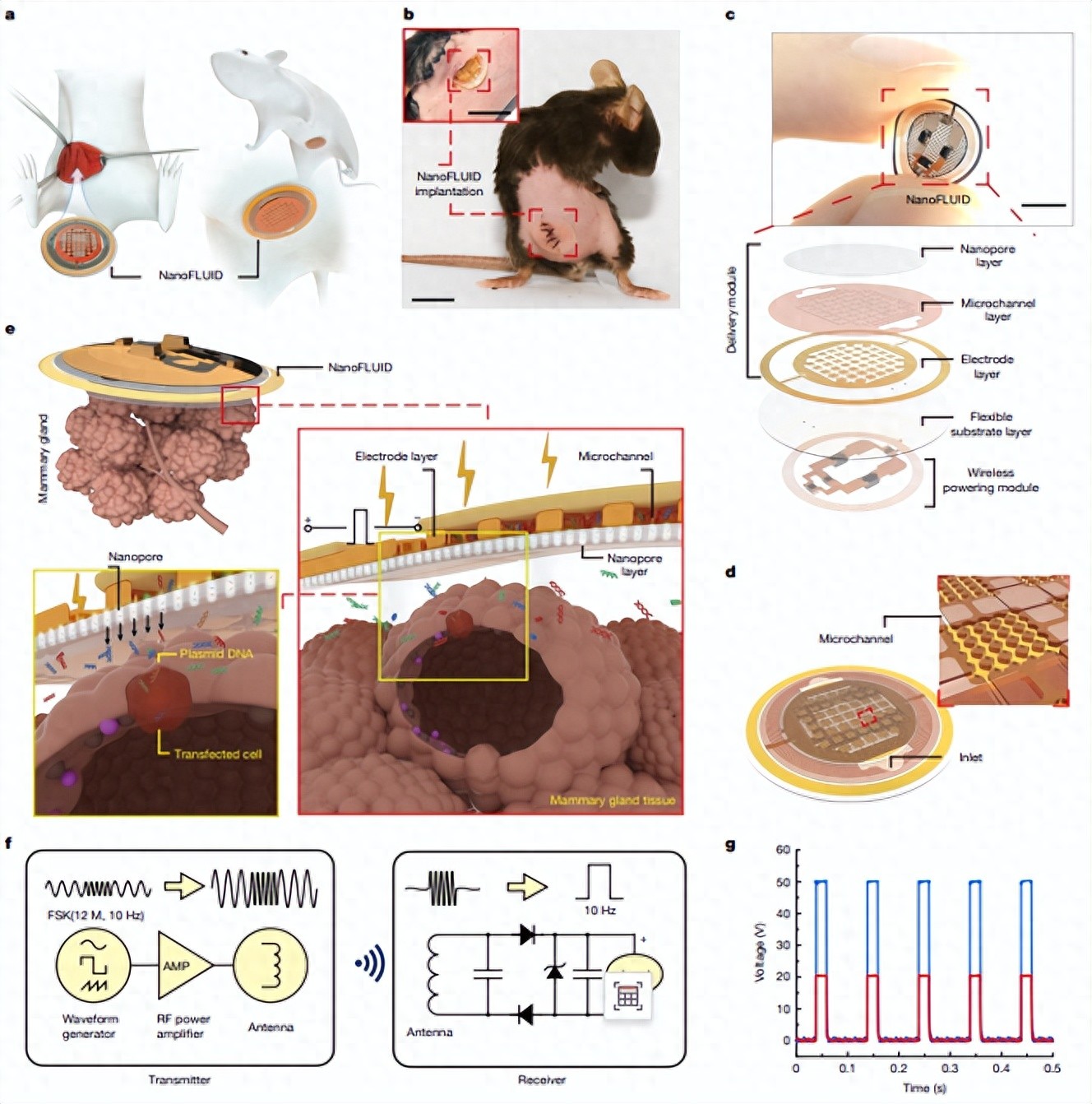 “初期纳米电穿孔这个技术只能用在体外细胞上,而一个器件要想植入体内的话,它一定要具有轻、薄、能够装载药物还能产生电场这几个核心特征。”常凌乾坦言,NanoFLUID的灵感一方面来源于纳米电穿孔这一课题组的标签式技术,另一方面则来源于和柔性电子领域专家的交流,在学术交流中,科研团队逐渐找到了如何将纳米电穿孔加载在微型器件上面的方法。