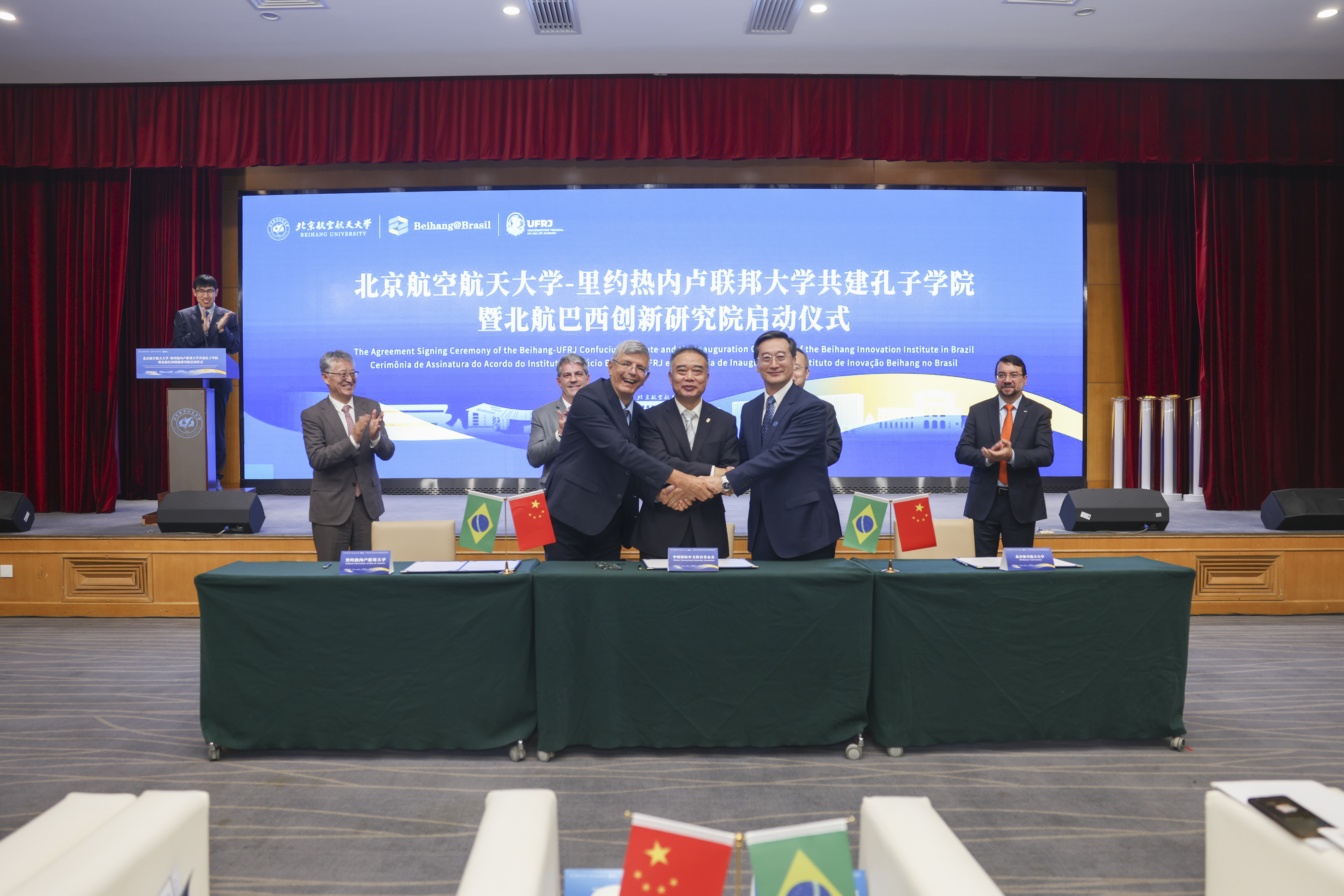 据悉,北航-里约热内卢联邦大学孔子学院、北航巴西创新研究院与北航巴西中心的三位一体布局,标志着我校对巴教育科技合作进入全要素协同创新阶段。孔子学院作为航空航天特色文化品牌,以“中文+航天”开辟文明互鉴新航道。北航巴西创新研究院作为北航首个海外研究中心,以“前沿探索-产业赋能”双轨机制破解可持续发展难题。北航巴西中心作为中巴人才培养、科学研究和文化交流合作战略枢纽,积极引进巴西优质智力资源。三平台形成“文化筑基-科研破冰-产教融通”战略闭环,未来将以人文交流厚植民间友好,深化中巴科研联合攻关,培育新质生产力,全方位服务中巴命运共同体。