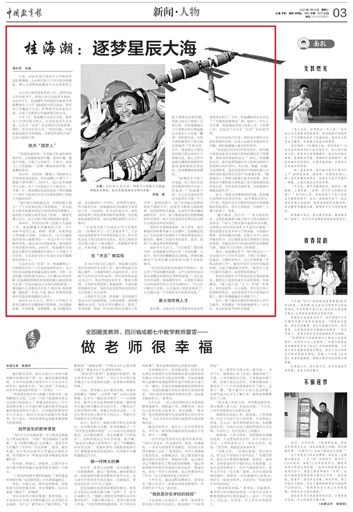 如今,除了继续在教学科研岗位上多作贡献外,桂海潮还“时刻准备着再上一次太空,再去探索更多的科学奥秘”。