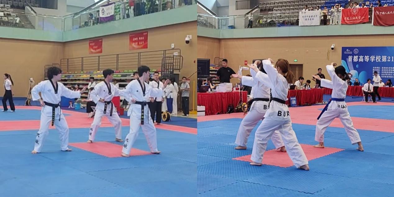 北航新闻网5月29日电(通讯员 刘承)5月24日-25日,首都高校第21届跆拳道锦标赛在北京信息科技大学(沙河校区)体育馆举行,比赛共吸引39所高校的637名运动员参赛。体育部汪芸、陈岩老师带领跆拳道队16名队员参赛。队员们发挥出色,斩获2项冠军、4项亚军和4项季军,刷新历史最好成绩。