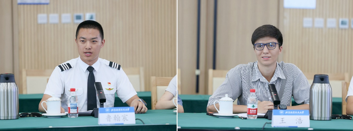 座谈会上,同学们动情讲述求学期间的点滴成长,分享交流在北航吸取的智慧和力量,并表达了对母校的感激与不舍。数学科学学院姚青茂分享自己在“数智交叉”领域的科创经历,表示将继续深入探索人工智能与数学的交叉研究。交通科学与工程学院迪拉然·那斯江讲述参与“畅叙疆来”实践队以专业赋能乡村振兴、促进民族团结的难忘经历,表示将努力把实践所学转化为推动个人成长的坚实力量。飞行学院鲁翰宸分享了成长为民航飞行员的奋斗故事,表示将努力为祖国民航事业贡献青春力量。国际学院王浩回顾了作为首批萨尔瓦多留学生,从语言零基础到顺利毕业并取得优异成绩的北航故事,表示将继续为筑牢中萨友谊贡献力量。
