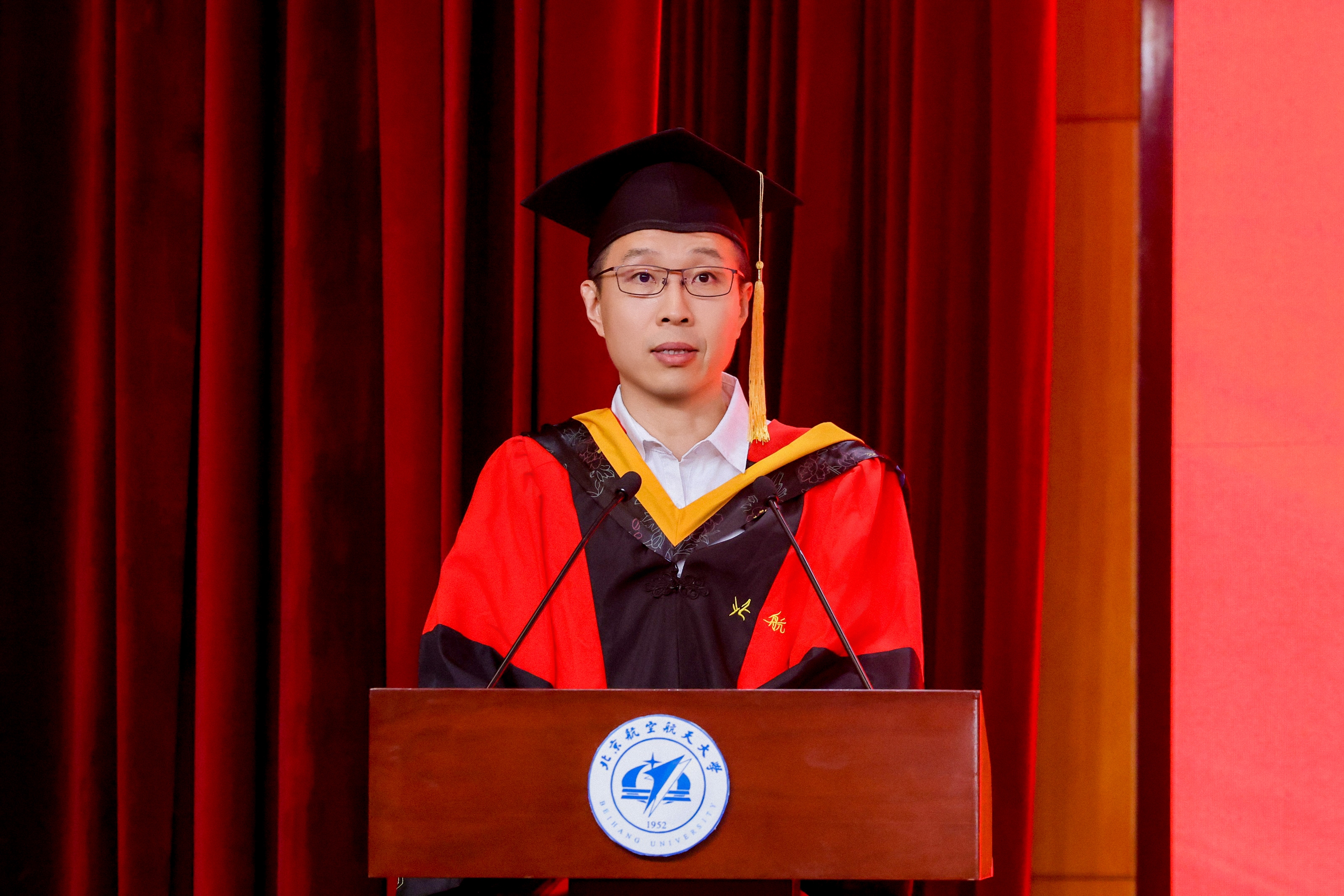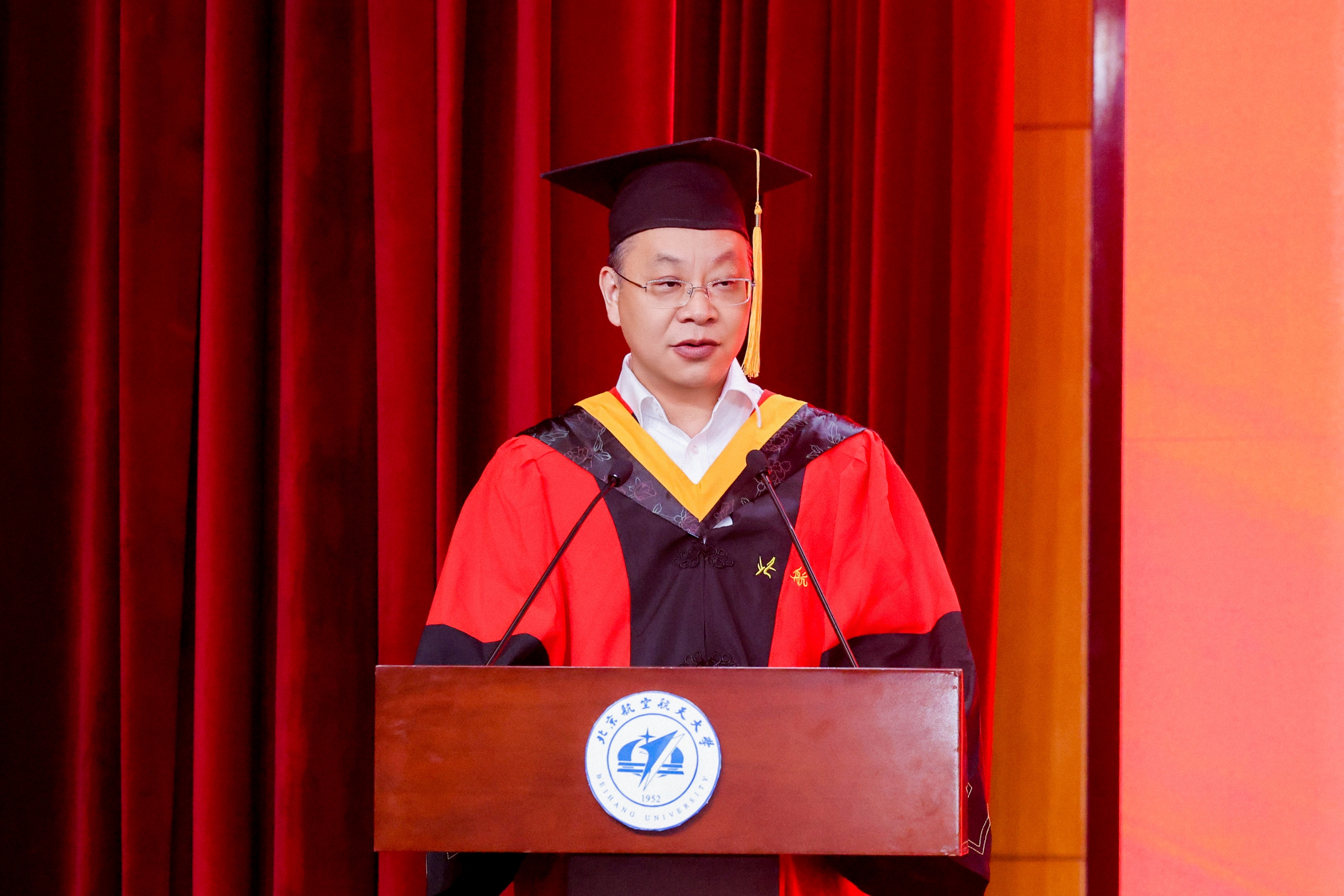 中航科技集团有限公司第一研究院院长助理、北航国家卓越工程师学院工程硕博学位评定分委员会副主席何巍寄语毕业生,厚植爱国情怀,胸怀“国之大者”,永葆创新精神,始终坚守初心,永远追求卓越,勇于挑战自我、突破自我,为国家和社会做出更大贡献。