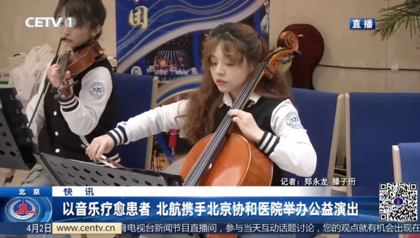 期间,杨文菁还代表学校参加了国庆75周年首都机场快闪活动、“协手同航”公益快闪等多场活动。“每次演出,都是对自我的超越,也是与听众的情感交流。当琴弓拉过琴弦,那一刻的专注与投入,是另一种形式的表达。”谈及自己参加公益活动的最大感受,杨文菁动情地说道。