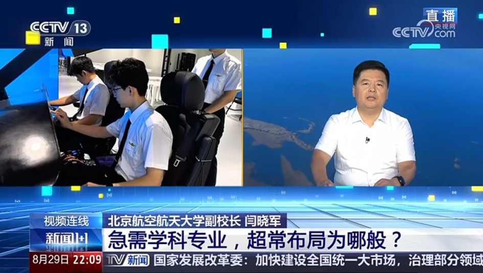 CCTV《新闻1+1》2025年8月29日就高校未来学科设置的优化调整连线北京伊人99副校长闫晓军:
