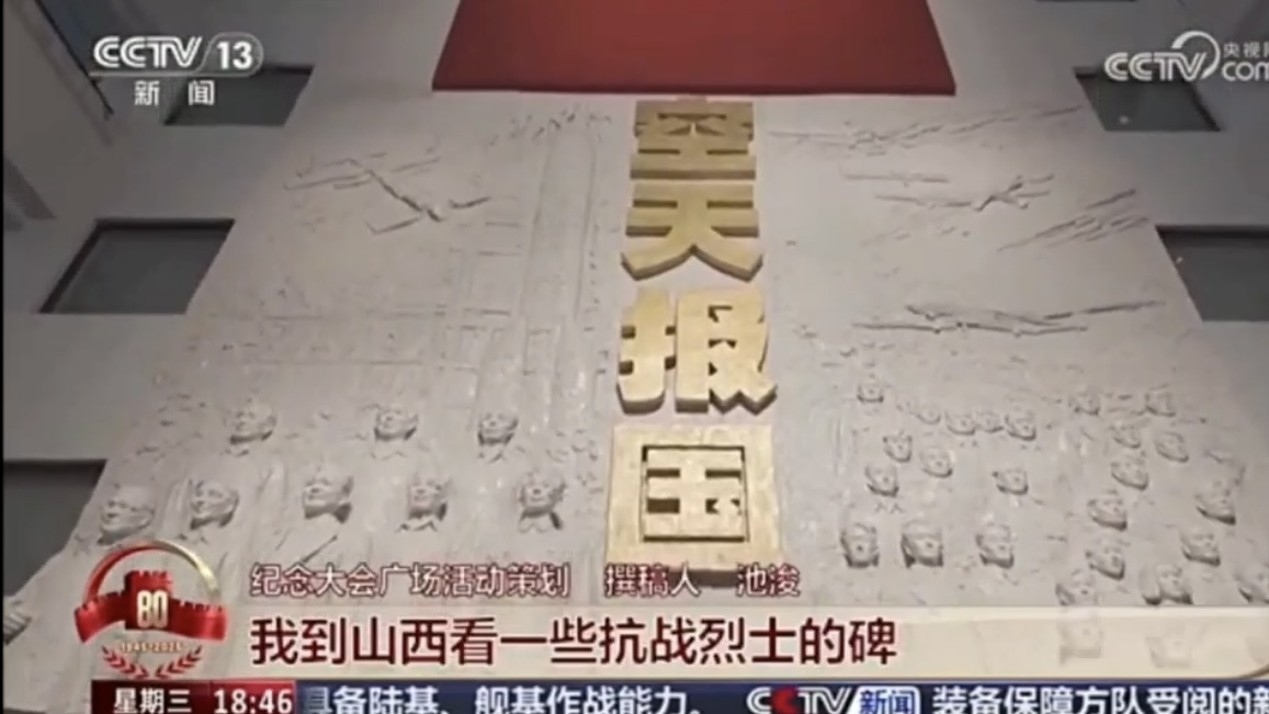【同期】纪念大会广场活动策划 撰稿人 池浚:我到山西看一些抗战烈士的碑,碑上好多名字是乳名,就是这个孩子连大名还没有起的时候,他已经当了烈士了。我看到这些名字我真的眼泪都要掉下来了。还有更多的人是名字都刻不上,这个世界都不知道他曾经来过,就是这些人换来我们今天的。